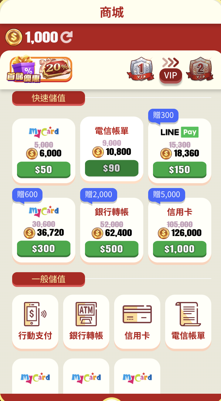 快速儲值一般來說配合的是高效率通路,例如LINE Pay、MyCard跟信用卡,適合小額、即時性高的玩家操作;而一般儲值則包含更廣泛的第三方支付及銀行轉帳通路,可能有較長處理時間,但是也較適合中高額儲值需求者。