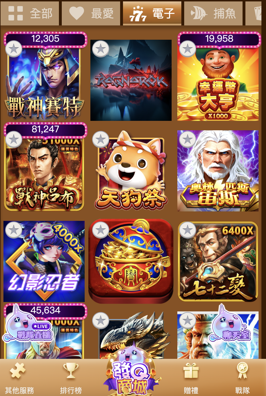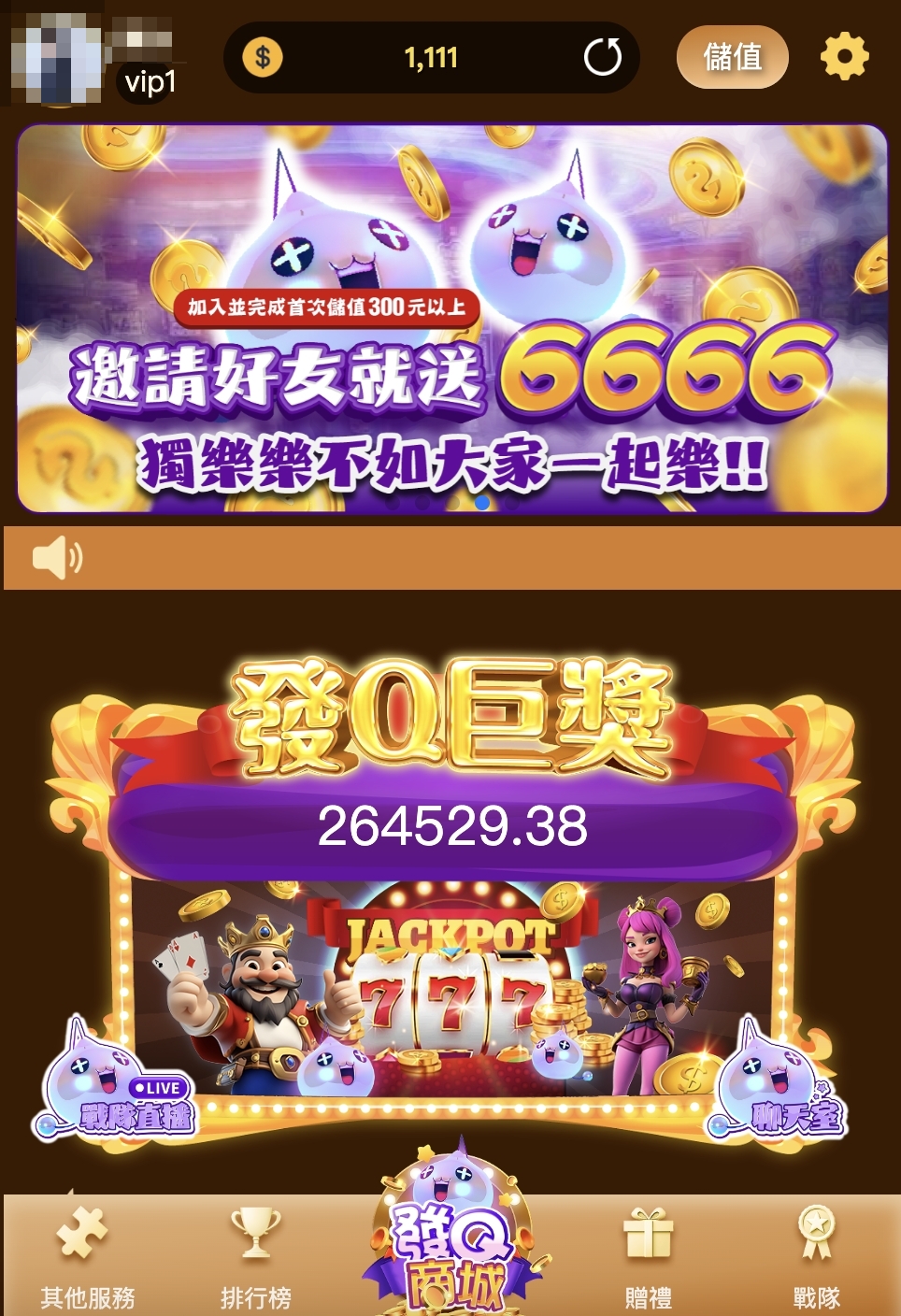 而在整體導航設計上,發Q娛樂城將所有功能模組整齊收攏至底部導覽列,包括其它服務、排行榜、發Q商城、贈禮、戰隊…等多樣選項。玩家能夠透過簡單直覺的圖案切換各個子功能頁面,不會有迷路感或操作上的負擔,整體使用門檻相當低。
