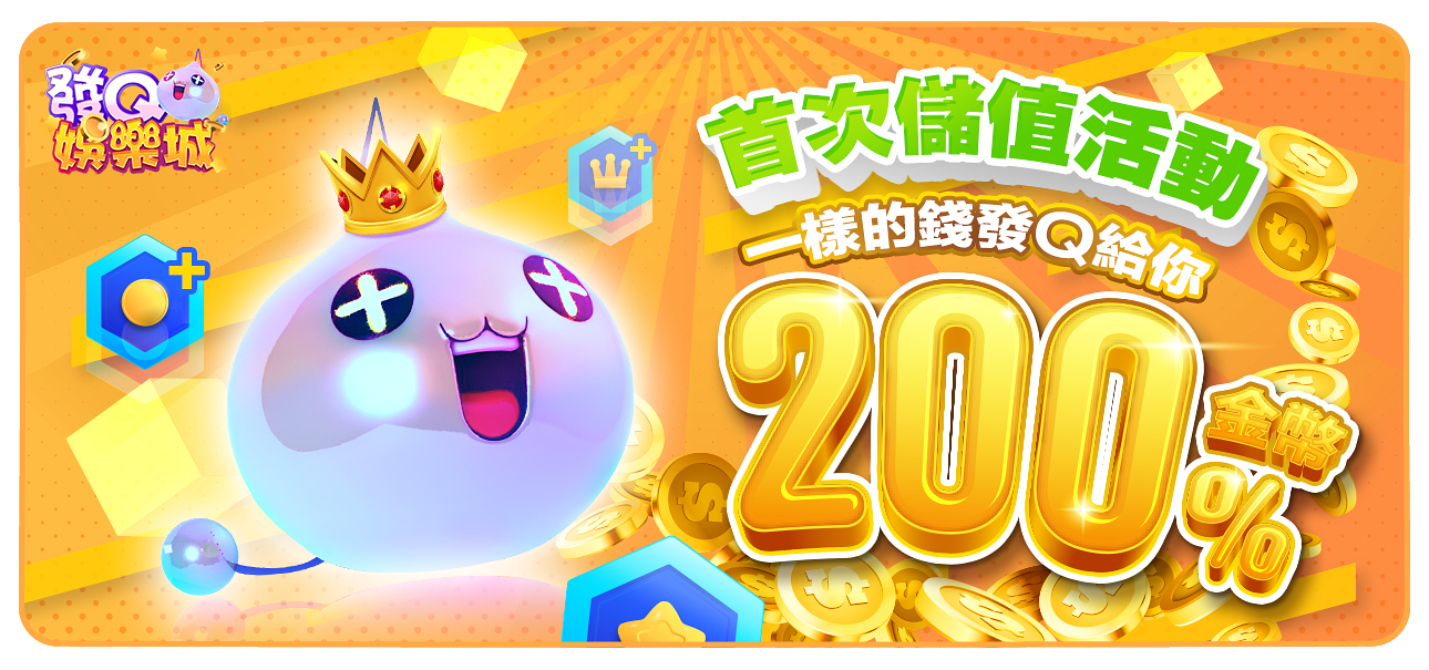 發Q娛樂城在首儲回饋設計上提供高達200%的獎勵比例。活動條件明確:只接受儲值1000 MyCard積分,對應獲得100000+100000金幣,總計20萬金幣,需完成20萬積分有效下注,並於七天內解鎖資產後方可提領。