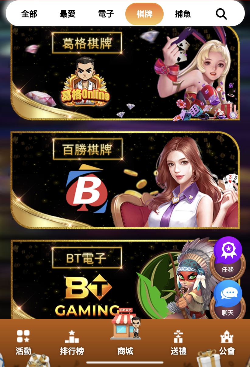 雖然葛格娛樂城並非以棋牌為主打,但也提供了三間廠商之棋牌遊戲,包含: