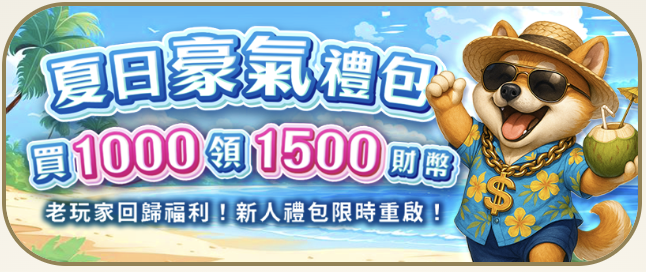 夏日豪氣禮包:額外贈幣之五倍流水挑戰