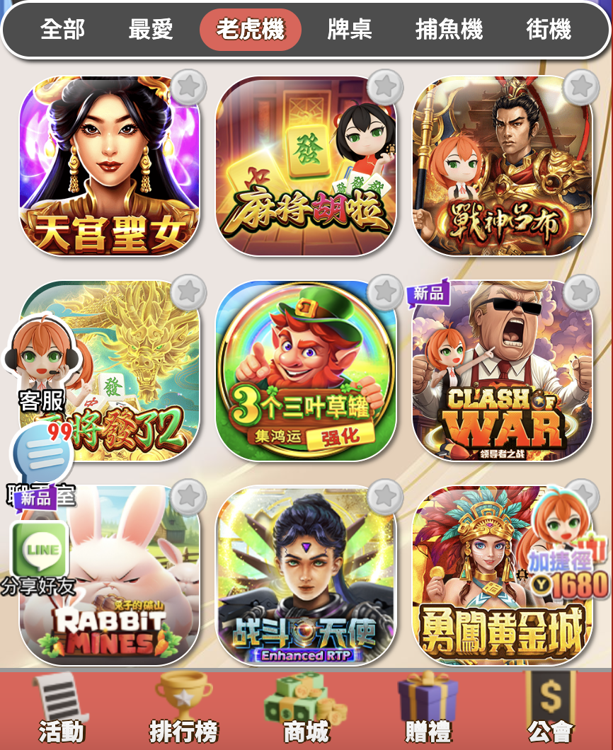 這些遊戲畫風多變、介面精緻,從三國風格、東方神話到趣味棋牌要素通通都有,足見平台在遊戲內容上確實投入資源。然而,最大的敗筆卻在於遊戲分類系統幾乎不存在,所有機台一股腦地堆在同一頁面,無法根據主題、賠率、開發商或熱門程度進行篩選。