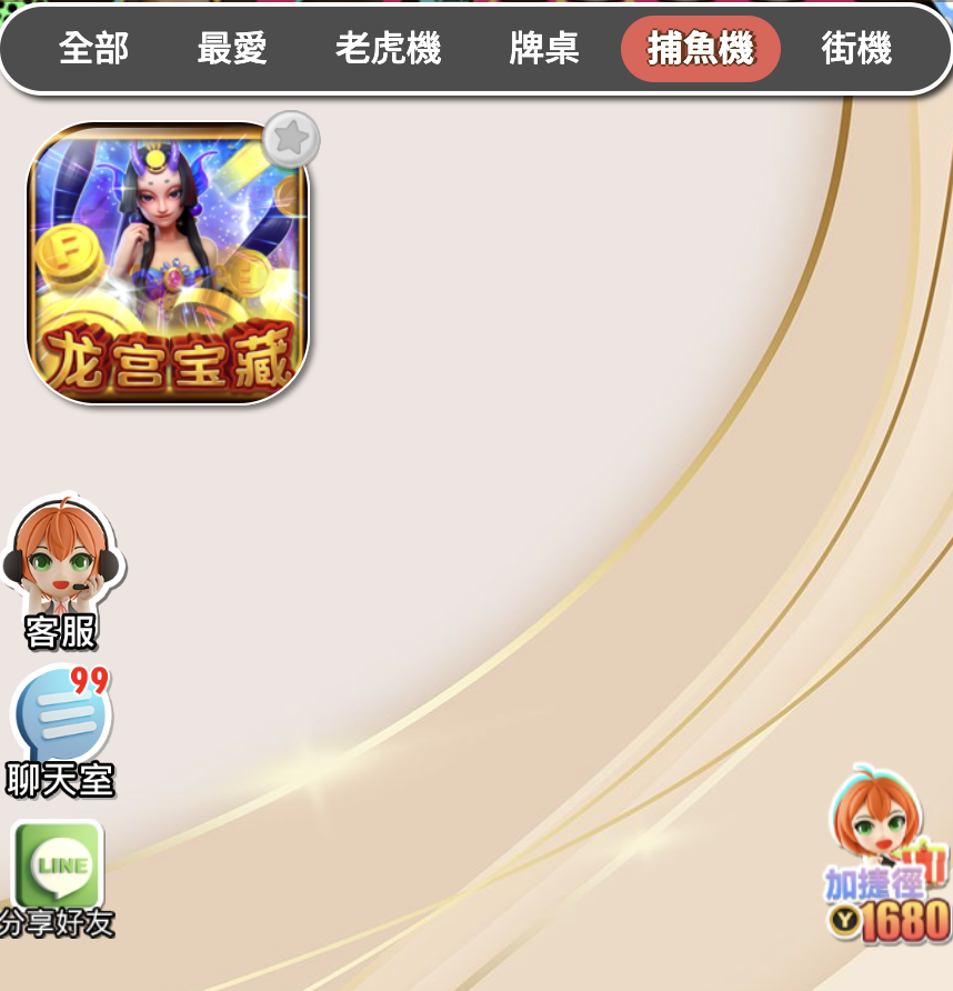 - 捕魚機:只有一款「龍宮寶藏」,缺乏高階玩法或多樣場景,針對喜愛捕魚機遊戲的玩家而言幾乎無法持續遊玩下去。