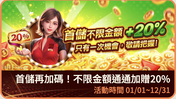 「新人限定」之首儲加贈活動,是另外一項看似誠意滿滿之行銷活動方案。依照爽爆娛樂城說明,首儲不管金額大小,都能夠享有20%之額外贈點。